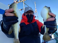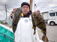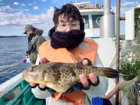 今日の感想 朝から、狙いして見ました。開始から好調で、1人釣れると、もう1人、直ぐ釣れたりして、食い良好な当りです。北西風吹きますが、今日は、少しずつ場所ずらしての大流しして、釣れますので、未知の場所も狙って、何処釣れるのか?試したりしました。流していて、ショウサイフグ&コモンフグ釣れて、カワハギ、ウマズラと釣れて楽しめます。ヒガン(アカメ)フグ は、御客様3人で、7匹、6匹、4匹でした。ヒガン(アカメ)フグ釣るなら、今チャンス明日は、ショウサイフグ&コモンフグ&ヒガン(アカメ)フグ 狙いしようと思います。