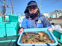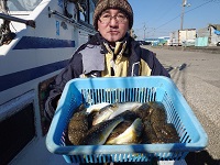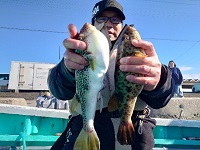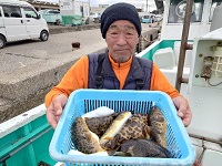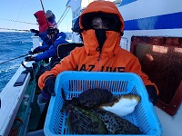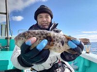 今日の感想 新年初出船なので、大漁祈願の儀式済まして、太東沖6mで遣って、型出なかったので、直ぐ5mの根がらみへ行くと、反応当り流していくと、ショウサイフグ&コモンフグが、まだ場荒れしていないのか?型出だしました。船が、何隻か?増えると、当たらなくなりました。段々と南下して行きました。後半、ヒガン(アカメ)フグ 狙いしまいた。。ヒガン(アカメ)フグ を1名だけ残念でした。もう少し、ショウサイ欲しかったですね。