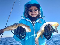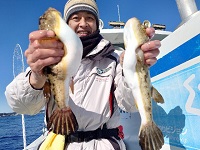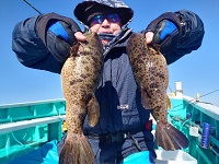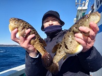 今日の感想 朝の内は、太東沖向けましたが、海悪く我慢出来なく、大原沖15mの港前で、ショウサイフグ&コモンフグ&ヒガン(アカメ)フグ 狙いして見たら、釣れる所のポイント狙いしたかったですが、ヒガン(アカメ)フグの食い良くて、海悪い中、大流し出来ます。しかも、今日は、良型サイズが、結構釣れる中、ショウサイ、コモン、カワハギ、ウマズラなどが、お顔だしてくれて、楽しい釣りでした。凪ぎの海で、ポイント狙いしたら、もっと釣れて爆釣りだったでしょうね。ヒガン(アカメ)フグ釣るなら、今チャンスだと思いますので、明日も、状況見て、狙って見ようと思いますので、釣り来て下さい。御客様2名の釣果です。
